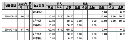 7. 则明细账显示一条新的记录,数量为10,单价为5,总金额为50元。即本次采购的真正入库成本。